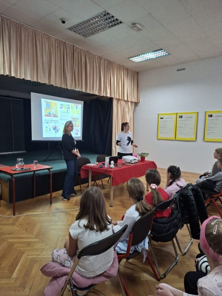 Učenici 3.V razreda sudjelovali su 23.10. na interaktivnom predavanju “Konji, mačke i pljačke naglavačke” u prostoru Knjižnice Dubrava. Interaktivnim međugeneracijskim predavanjem zavirili su u svijet u kojemu mačke, konji i pljačke “napuštaju” korice knjiga i kreću u osvajanje stvarnog svijeta. Gdje završava priča i započinje stvarnost, doznali smo iz dijelova knjiga hrvatskih autora i priča iz stvarnog života. Kroz uzbudljivu storytelling pustolovínu, koja je sve prisutne izvrnula naopačke, doznali smo iza čega sve stoje knjižničari, kakve veze imaju s konjima i mačkama, te što se dogodi kada se njihov odabir knjige poklopi s onime lukava lopova? Sve sličnosti sa stvarnim konjima, mačkama i pljačkama nisu slučajne. Sve su zaključili zabavnim kvizom.