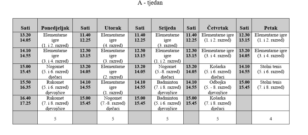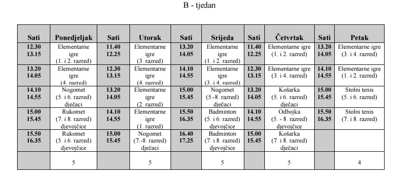 Ovdje možete pregledati raspored sportskih aktivnosti